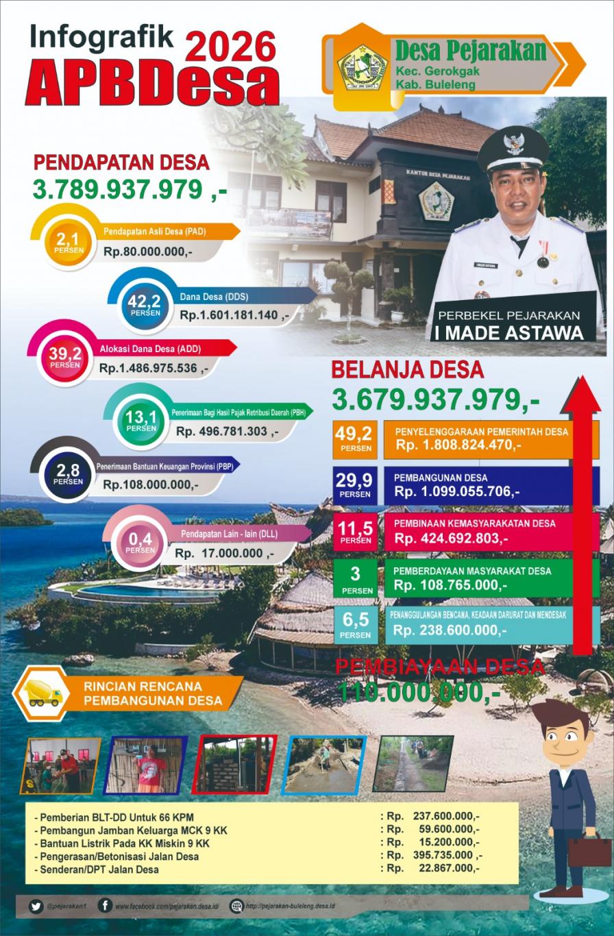 - Info Grafik Rencana Pembangunan Pemerintah Desa (APBDesa) Pejarakan Tahun 2026